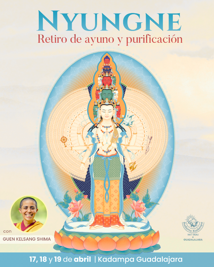 El retiro de Nyungne es una práctica muy poderosa y profunda de purificación y ayuno. A través de generar estados mentales virtuosos como el amor y la compasión, refugiarnos en el Buda de la Compasión y realizar esta preciosa práctica, el retiro es especialmente eficaz para pacificar perturbaciones mentales intensas, como el apego y el odio. Además, nos ayuda a mejorar nuestras experiencias de amor y compasión.
